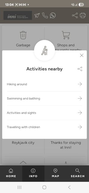 In our Guidebook app you will find some practical information and tips for your stay at Inni. We send our guests a link just after they have have confirmed the booking, so they can use the app it while planning their trip to Iceland.